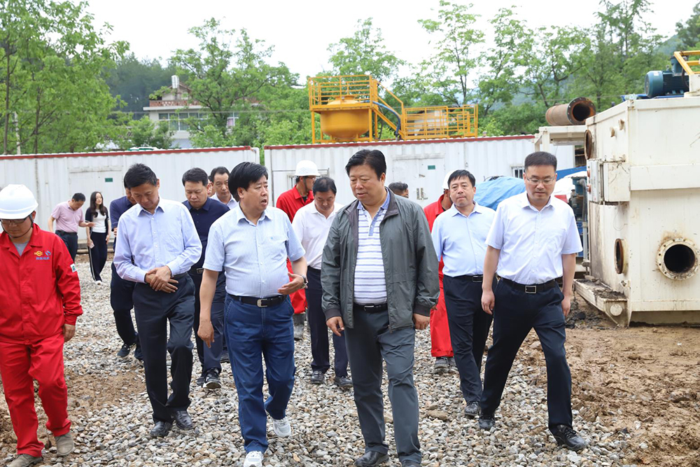 6月12日下午,汉中市市委副书记、市长方红卫带领市级相关部门负责同志,在陕煤地质集团总经理谢辉、副总经理姚建明、煤田地质油气钻采有限公司总经理郭文祥的陪同下到陕南镇巴陕镇页1井现场进行调研。